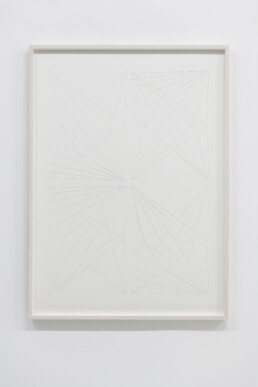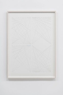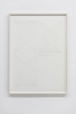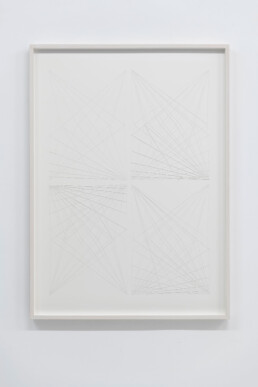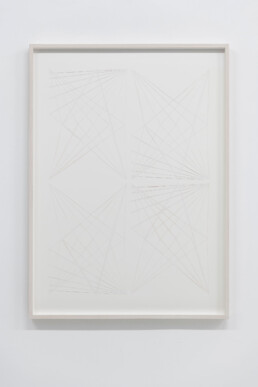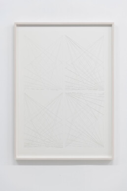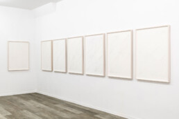 Mehrteilige Papierschnitte, ein- oder zweilagig, weißes Papier, Farbstift, gerahmt, je 104 x 75 cm, 2018