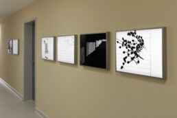 Hinterleuchtete Siebdrucke, Acrylglas, Edelstahlrahmen, je 87 x 122 cm oder 45 x 62,5 cm